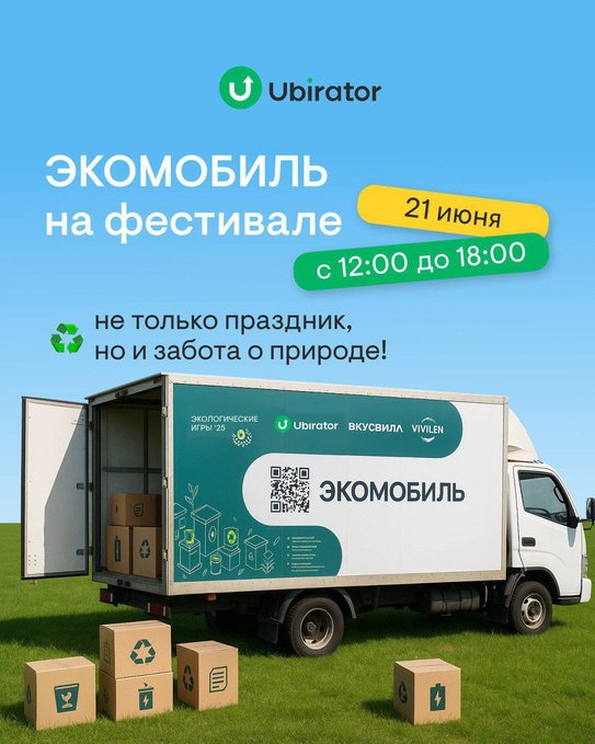 🚛 От компании Ubirator на мероприятии будет стоять экомобиль — специальный транспорт для сбора пластика – и контейнеры для раздельного сбора вторсырья.